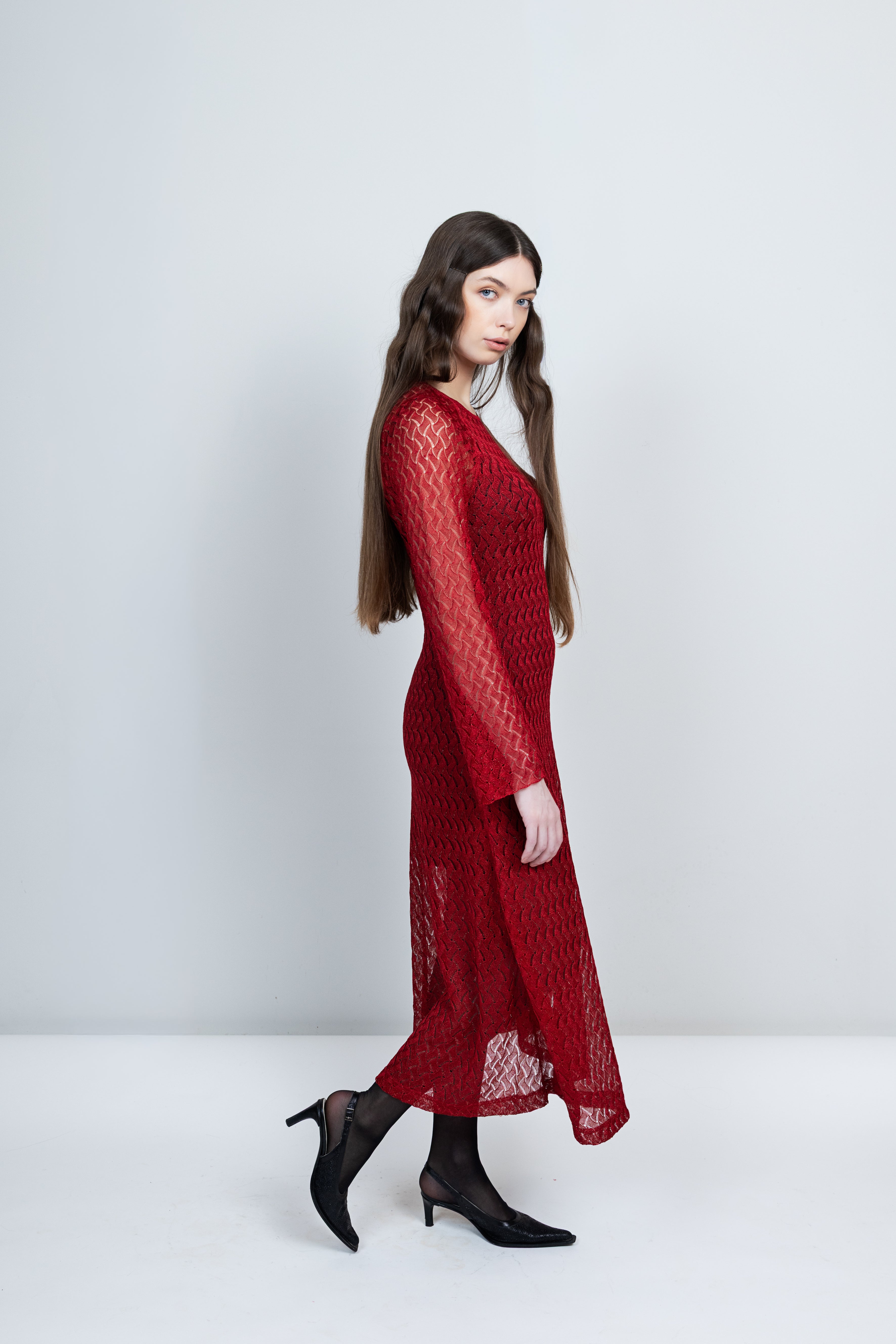 Pre-Spring unfolds with Magdalena dress, a limited winter edition in sparkling rose. Knit in a delicate pattern & feminine shape, with bell shaped skirt & sleeves.